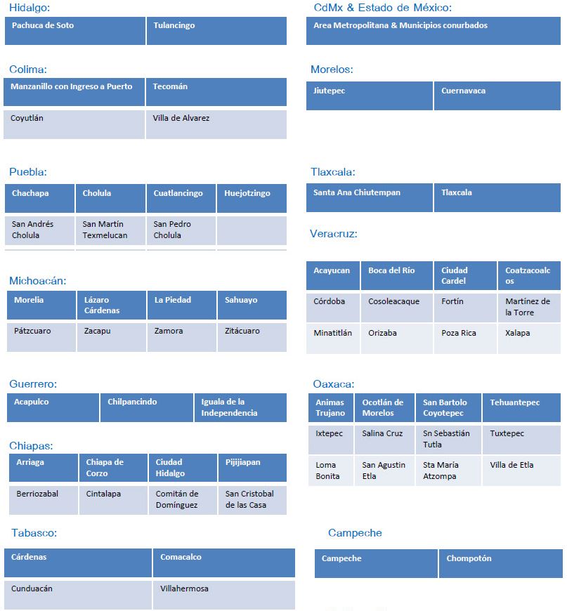 Cubrimos la Totalidad del Territorio Nacional en sus principales rutas comerciales, así como entregas en CEDIS y en Almacenes de entrega directa.